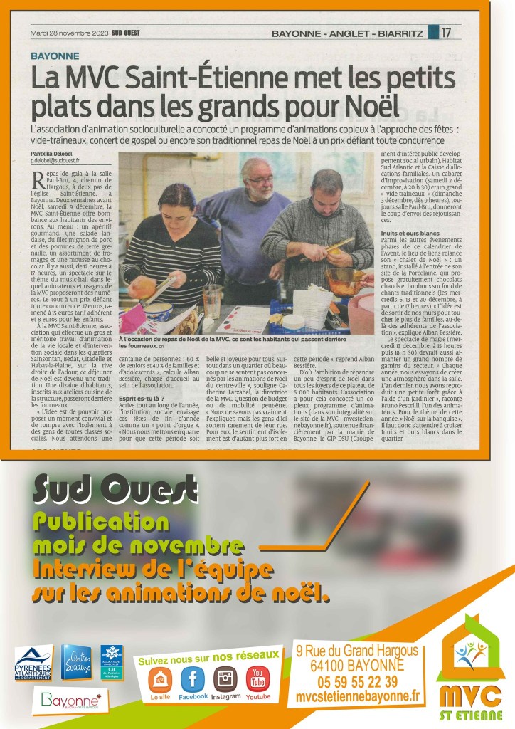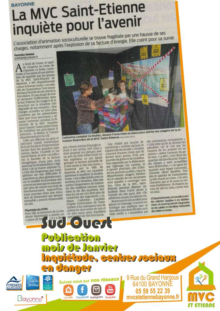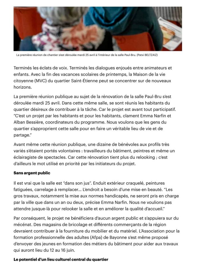 En 1991, l’association a pris un nouvel élan et elle est devenue le Centre social Saint-Étienne, avec une équipe salariée et des projets élargis. Quelques années plus tard, la mairie a décidé de fusionner MJC et centres sociaux. En 1998, après une assemblée extraordinaire, la structure a adopté son nom actuel, Maison de la vie citoyenne Saint-Étienne. Une salle proche des locaux de la MVC a même pris le nom du fondateur Paul Bru. Depuis, la MVC n’a cessé de se réinventer pour répondre aux besoins d’une population toujours plus diverse. “Au départ, nous étions plus sur une proposition d’activités qui répondent à un besoin. Maintenant, nous sommes davantage sur l’accompagnement et une vigilance envers les personnes fragiles. Tout ceci dans le but que tout le monde se rencontre dans les valeurs de l’éducation populaire”, explique Cathy Larzabal, directrice de la MVC.