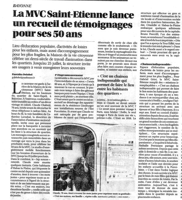 La Maison de la vie citoyenne (MVC) Saint-Étienne fête ses 50 ans samedi 20 septembre. Un demi-siècle d’histoire, d’initiatives et de solidarité marqué par un programme festif : tournoi de pétanque, laser game, défilé, repas convivial, animations pour petits et grands, et un concert apéritif. Un livre paraîtra au premier trimestre 2026 pour retracer l’histoire du lieu. Car la MVC Saint-Étienne est bien plus qu’une simple structure de quartier. Elle incarne depuis cinq décennies un lieu de rencontres, de culture et d’entraide, qui a accompagné et accompagne encore des générations entières de Bayonnais. Son aura dépasse largement les frontières d’Habas.
