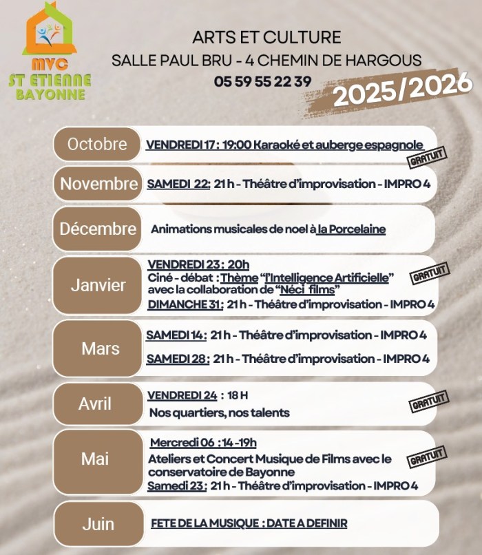 Arts & Culture Programme d’Octobre 2025 à Juin 2026 2024 Télécharger le PDF Télécharger le PDF 2023 Télécharger le PDF Télécharger le PDF 2022 Partager : Partager sur X(ouvre dans une nouvelle fenêtre) X Partager sur Facebook(ouvre dans une nouvelle fenêtre) Facebook J’aime chargement…
