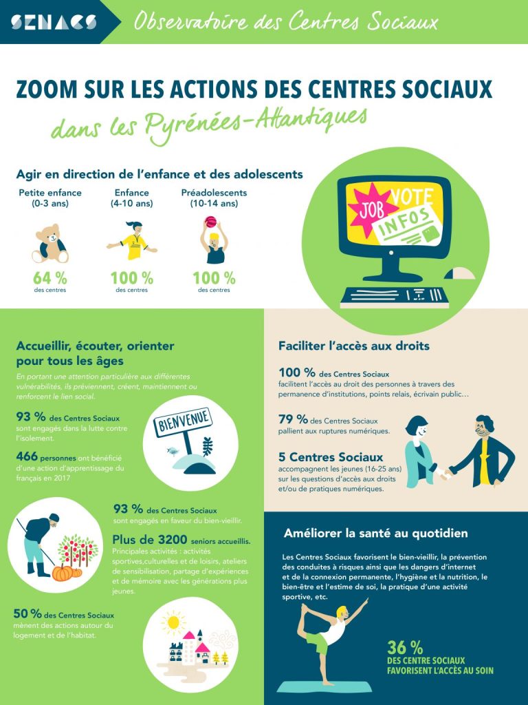 De 0 à 99 ans… Accessible à l’ensemble de la population, le centre social est un équipement de proximité à caractère généraliste qui donne l’accès à des ateliers d’activités ou de pratiques éducatives, de loisirs, sportives, culturelles et artistiques et qui participe au processus d’intégration de tous les habitants.